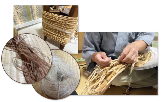 葛(くず)のつるや榀(しな)の樹皮など植物から採取された繊維を糸にして織られる自然布や原始布は、